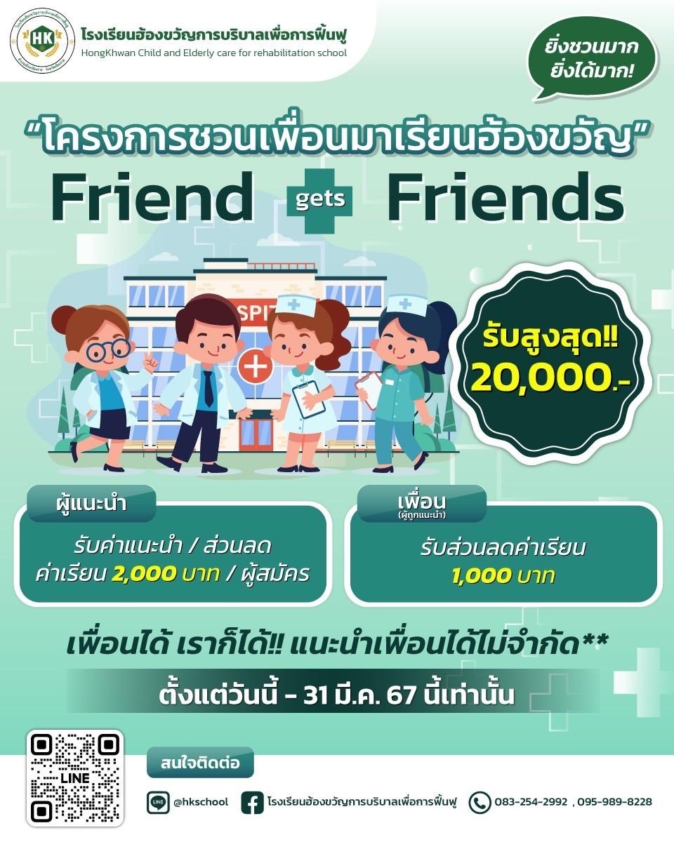 ชวนเพื่อนมาเรียนฮ้องขวัญ️ มีแต่ได้กับได้️กับโครงการชวนเพื่อนมาเรียนฮ้องขวัญ Friend gets Friends ชวนมาก ยิ่งได้มาก️ รับสูงสุด 20,000 บาท